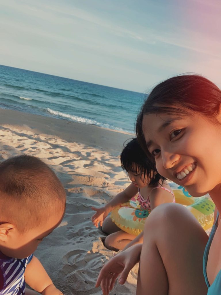 Một ngày của mình luôn bắt đầu từ 4:30 sáng khi các con còn đang ngủ. Sau khi vệ sinh thân thể, mình bắt đầu dạy lớp yoga đầu tiên lúc 5:15 sáng và kết thúc lớp thứ hai lúc 7:30 sáng. Mình dạy xong thì các con và chồng đã thức giấc. Ba sẽ chăm lo thay quần áo, vệ sinh buổi sáng cho các bạn nhỏ. Sau khi chở chị Silk đi học, ba sẽ ghé cửa hàng để làm việc nên còn mỗi mình và Quinn nhỏ ở nhà.