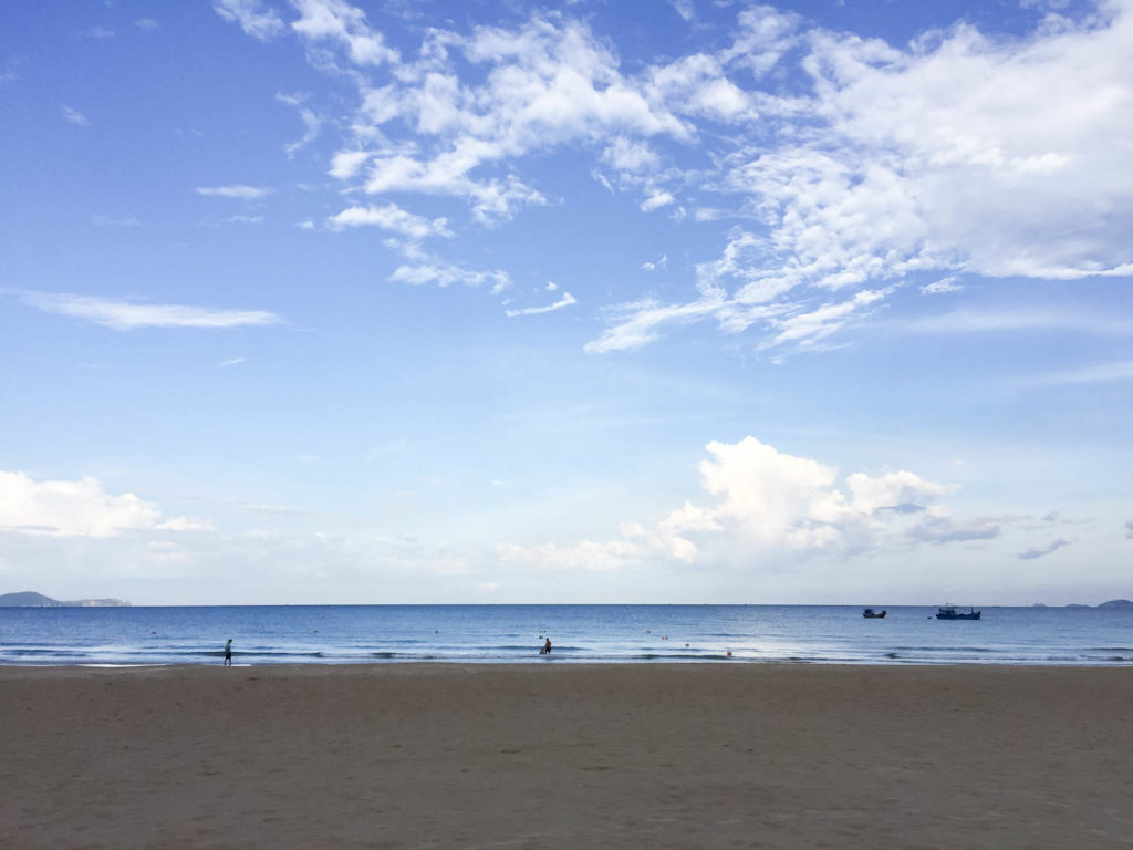 Bãi biển ở Anam là một trong những bãi biển đẹp nhất mà mình từng thấy ở Nha Trang. Cát trắng phẳng lỳ, nước biển xanh trong và không quá động. Nếu so với bãi của resort 5 sao Ana Mandara thì Anam lại may mắn sỡ hữu được bãi biển vừa xinh đẹp vừa riêng tư hơn rất nhiều.