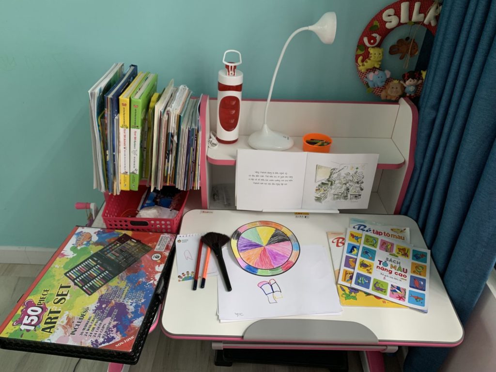Chăm chú quan sát con, mình nhận ra Silk rất mê vẽ. Silk thích tô màu, vẽ vời, sáng tạo trên giấy. Thế là mình hỏi ý con và quyết định cho Silk học thêm vẽ vào cuối tuần theo sự đồng ý của cô ấy. Mẹ Silk sẽ viết một bài đánh giá riêng về trường mỹ thuật mà Silk đang theo học trong bài viết sau nhé. Các bạn yên tâm nhe!