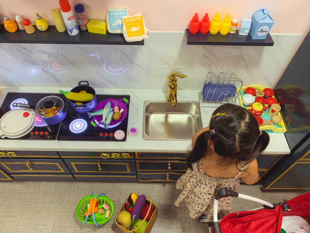 Với mẹ Silk, góc nấu ăn là không gian tuyệt vời nhất. Những món đồ chơi nấu nướng nhỏ nhỏ xinh xinh, được bày trí đẹp mắt, vô vàn ti tỉ các thứ từ trái cây tươi, bánh ngọt, gia vị, dụng cụ…khiến bạn chỉ cần nhìn qua thôi là đã muốn nhào vô chơi, ngay cả các bé trai cũng khó cưỡng nổi, tham gia nấu nướng khí thế.