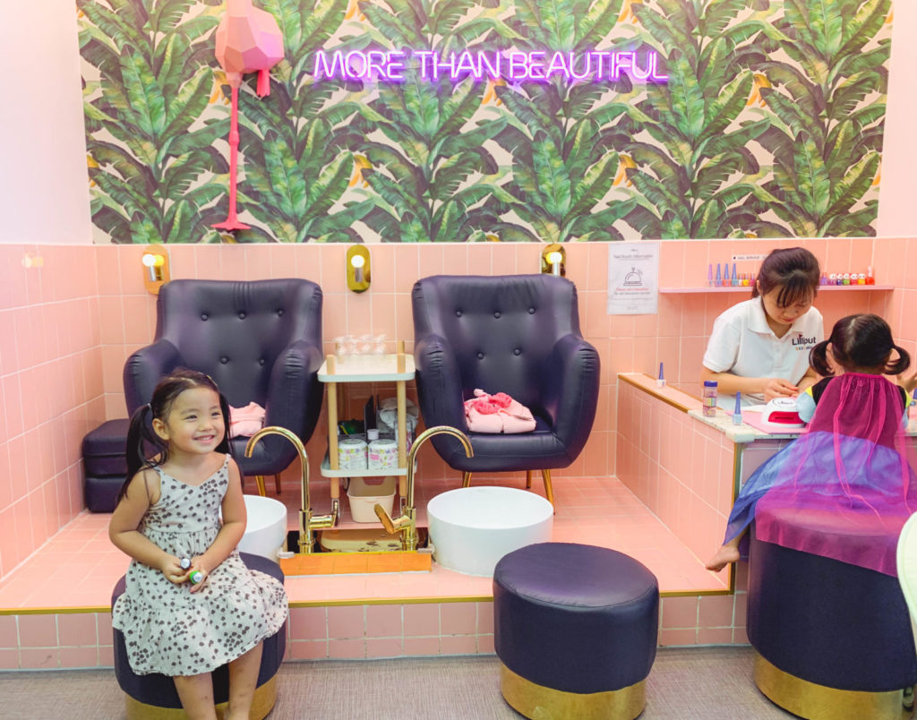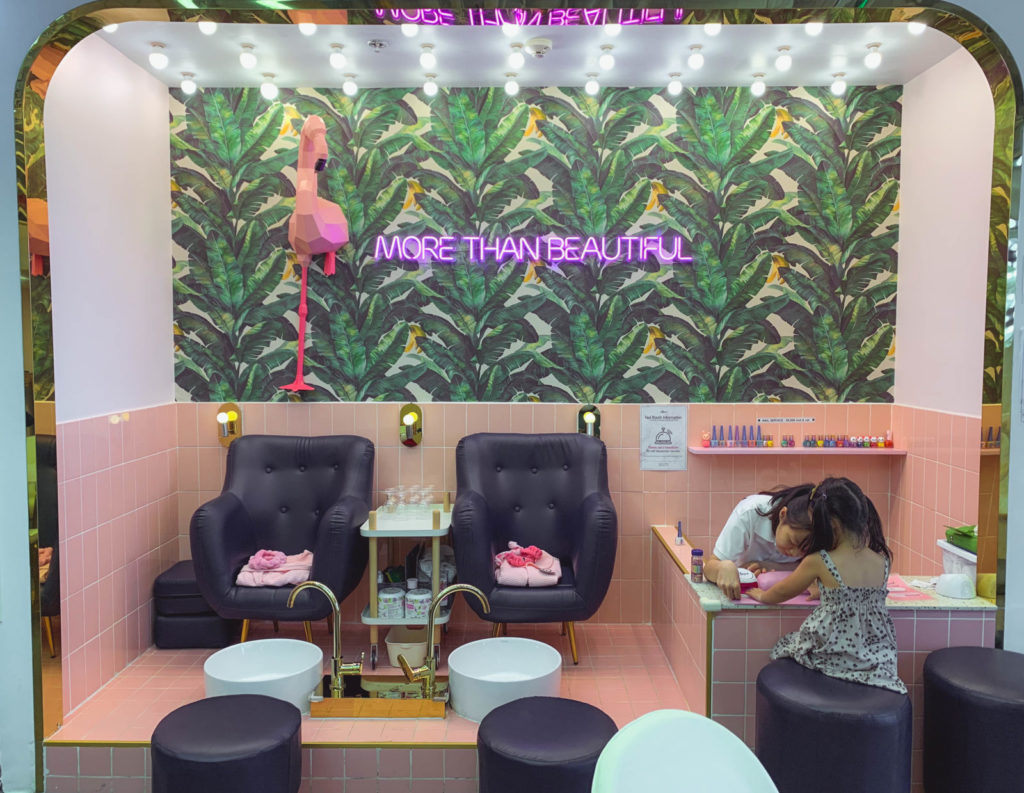 Dĩ nhiên, Silk mê tít nhất góc làm đẹp rồi. Ở đây có dịch vụ spa, sơn móng tay…thì ba mẹ phải trả thêm phí nhé. Mình chi thêm 50k cho bộ móng màu hồng lấp lánh kim sa của cô ấy hihi.