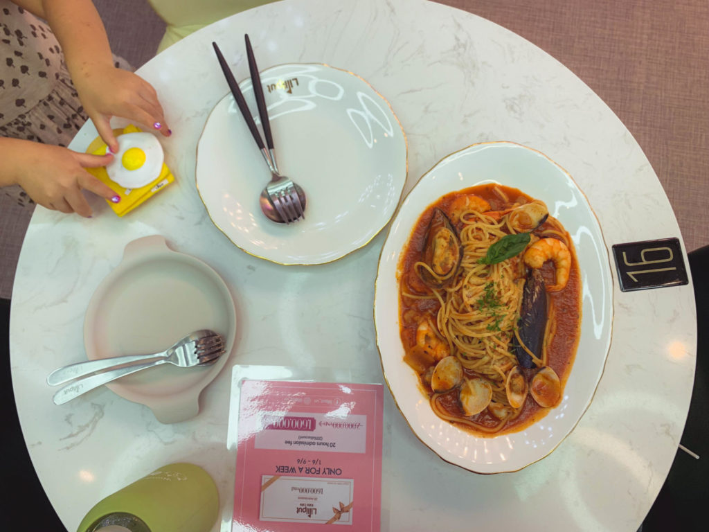 Bởi một phần thức ăn khá nhiều bạn và bé đều có thể dùng chung, không chỉ vậy thức ăn lại rất ngon, tươi và được bày biện đẹp mắt đúng chuẩn nhà hàng. Dĩa mì ý hải sản mình gọi vừa chất lượng vừa thơm ngon rất xứng đáng giá tiền 250k.