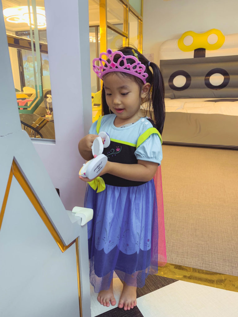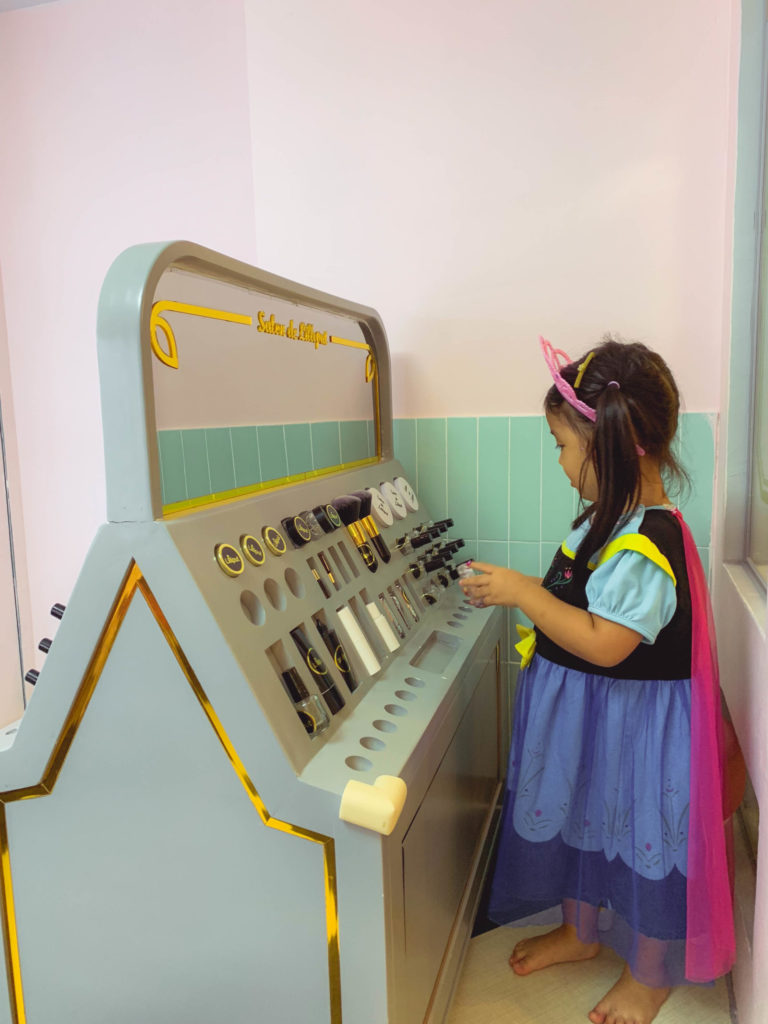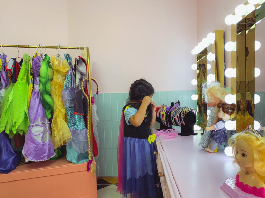Góc đam mê thứ hai của Silk là góc trang điểm – một căn phòng nho nhỏ với hàng dài bàn trang điểm đèn sáng choang với nhiều đồ chơi make up hấp dẫn và cả một sào quần áo hoá trang xịn xò để các bé hoá thân thành nàng tiên cá, công chúa Bạch Tuyết, Elsa…