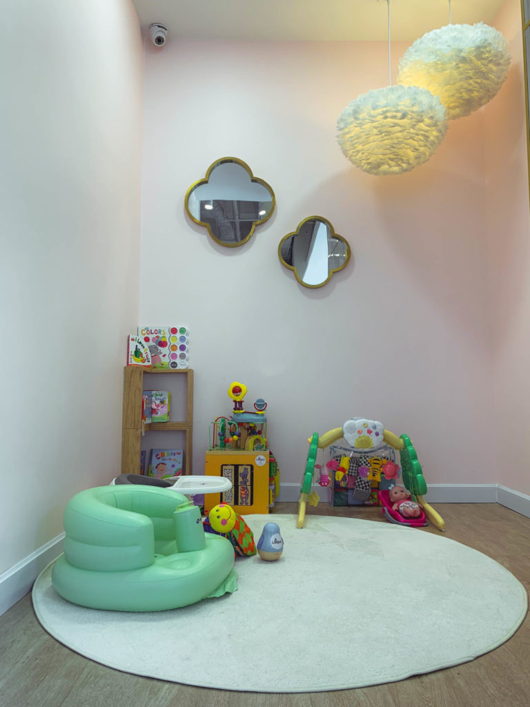 Với các bé “nhũ nhi” vài tháng tuổi được vào cửa hoàn toàn miễn phí nhưng cũng có sân chơi riêng. Góc nhỏ gọn, đáng yêu với vài món đồ chơi phát kĩ năng trong giai đoạn tập lật, tập quan sát, tập lắng nghe âm thanh…Tất cả đồ chơi đều đảm bảo xuất xứ, chất lượng chính hãng và kích cỡ phù hợp, tránh việc bé có thể nuốt nhầm những món đồ chơi quá nhỏ.