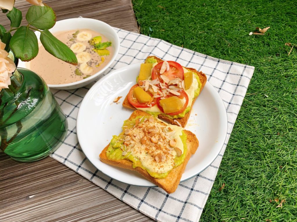3 phút là tích tắc có ngay những lát bánh mì nướng vàng giòn rụm dùng chung với bơ đậu phộng, bơ lạt, bơ hạnh nhân hay vô vàn các loại mứt trái cây thơm ngon. Món khoái khẩu của gia đình mình là bánh mì nướng dùng chung với bơ tươi. Mình chọn bơ chín mềm, rồi tán nhuyễn, cho thêm chút muối và tiêu. Trứng mình luộc lòng đào vừa chín tới. Bánh mì nướng bơ tươi và trứng rất ngon-gọn lẹ và bổ dưỡng. Các bạn thử nhé!