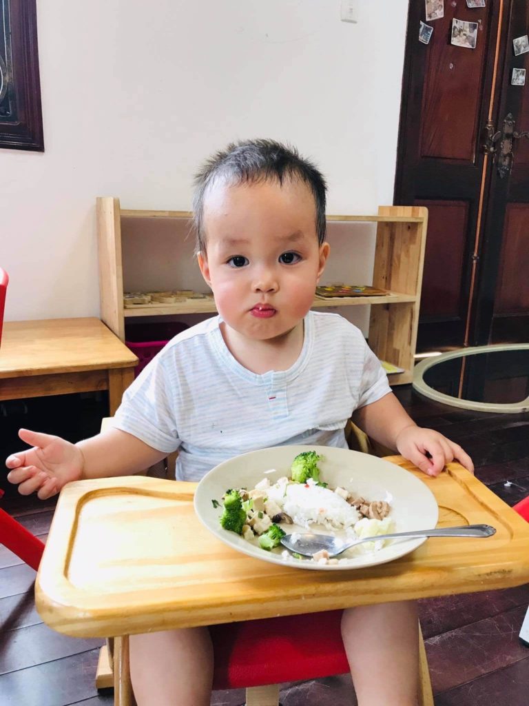 Ai cũng nghĩ chắc chắn ngày thứ hai – thứ ba Quinn sẽ khóc vì ý thức được mình đã đi học và bị bỏ rơi ở trường. Ngay cả bản thân mẹ cũng ngờ vực chuyện đó. Nhưng không hề! Mình thả con ngay tại cổng. Cô giáo bước ra đón Quinn vào trường không một tiếng khóc. Bất ngờ hơn, con ăn sạch sẽ các bữa chính và bữa xế, thậm chí còn xin thêm đồ ăn. Quinn được tập ăn Baby Lead Weaning từ 6 tháng tuổi nên con ăn được đa dạng thực phẩm, hứng thú với việc ăn uống và ăn thô khá tốt. Chị Silk cũng được mẹ tập BLW rất sớm và ăn giỏi hơn cả Quinn.