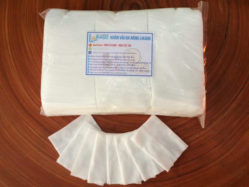Thấy vậy mình nghiên cứu và chuyển qua dùng khăn vải đa năng – y như khăn giấy ướt nhưng không mùi, không màu và không ướt :)) Mỗi lần dùng các bạn chỉ cần nhúng khăn vào nước ấm và lau cho con. Mình dùng thấy rất thích, tiện lợi, không gây hâm đỏ, an toàn cho bé và rất tiết kiệm cho mẹ. Một gói 300gr là 270 miếng mà chỉ có 50k thôi! Có cả loại 400gr và 500gr nữa cho các bạn dễ chọn. Trên mạng có rất nhiều trang bán khăn vải đa năng. Khăn của Likado mình đang sử dụng chất lượng tốt, giá thành cũng hợp lý các bạn có thể tham khảo dùng thử 😉